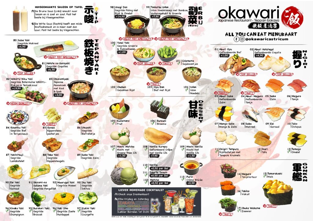 Een tafel reserveren bij Okawari? Dat kan telefonisch via 0251 296 299 of scroll naar beneden.